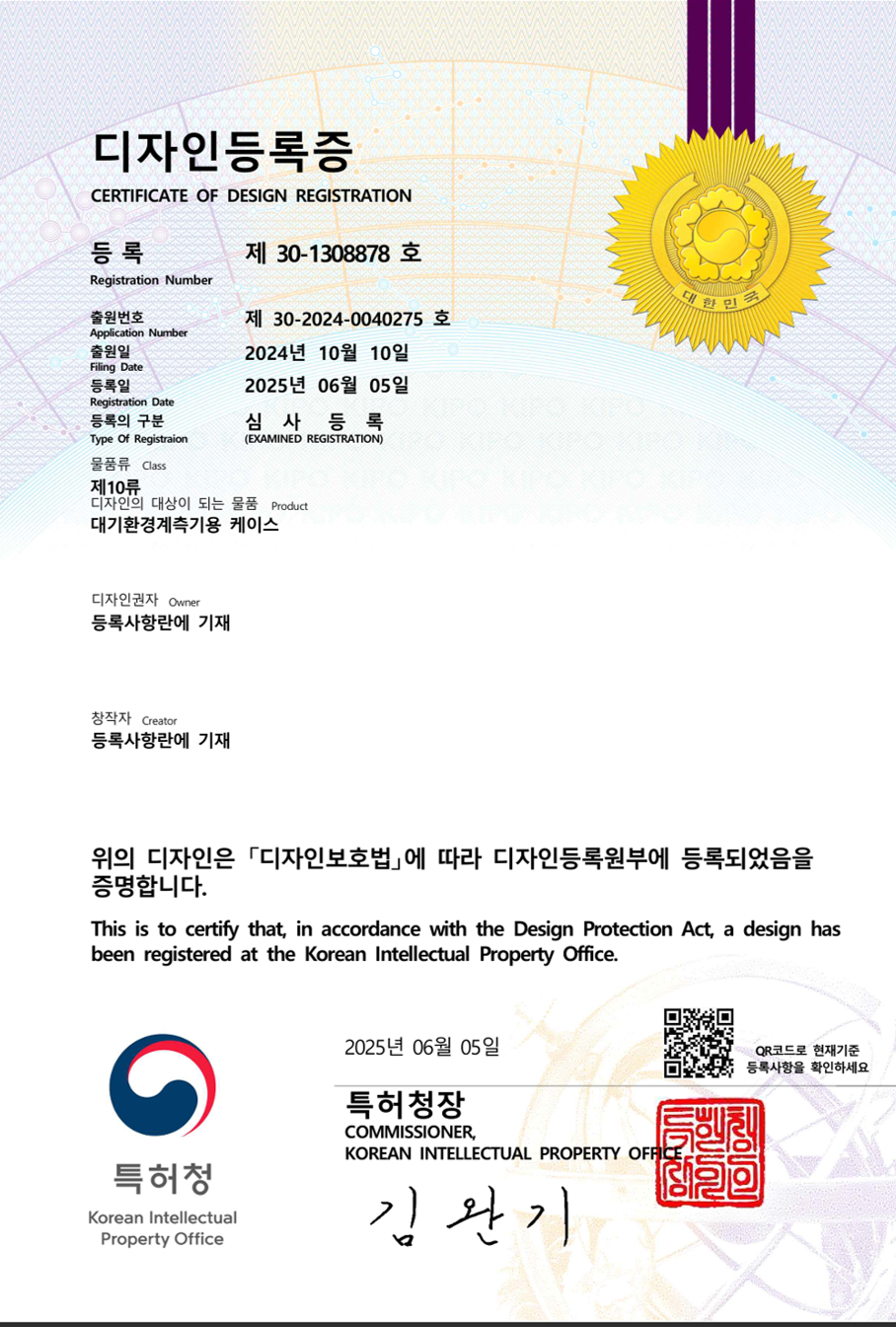 - 이동형 대기환경센서 디자인 등록